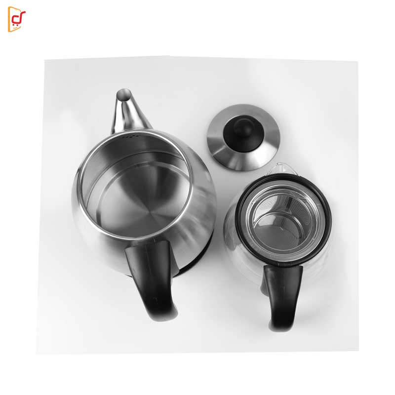 کتری استیل اصل با ضخامت عالی و محکم که ظرفیت ۱.۸ لیتری دارد